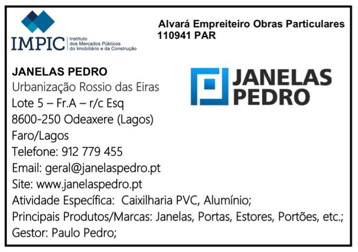 Alvará Empreiteiro Obras Particulares 110941 PAR A Janelas Pedro, é empresa uma empresa qualificada pela IMPIC – Instituto dos Mercados Públicos do Imobliário e da Construção.